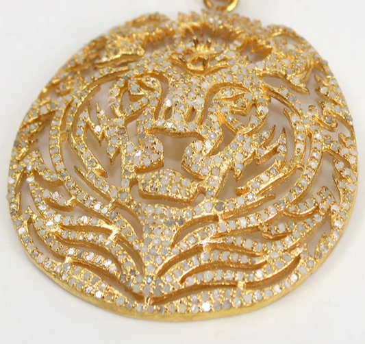 LionΒ Diamond Drop Pendant set in 14K Vermeil.Β