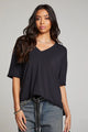We adore Mason styled with high-waisted jeans, creating a flattering and timeless look that works for any season. For a more feminine and flowy ensemble, pair it with your favorite skirt. The licorice black hue adds a hint of rock 'n' roll edge, giving this easy-wearing piece a unique twist that stands out in any wardrobe.