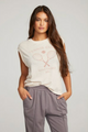 Loungewear Chic: Embrace the sleeveless comfort of this tee with loungewear for a relaxed yet stylish ensemble, perfect for laid-back days.