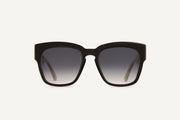 Female model is wearing the "El Salvador" sunglasses in layered sand with double gradient grey lenses.