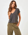Feel the sun's embrace, not its burn, with the West Coast Top in Ash. Its design whispers of casual elegance, while its comfort screams "sun, sand, and sea!" The West Coast Top goes where you go and does what you do. It's perfect for that early morning yoga, impressive at impromptu brunches and feels right at home at beach parties. Don't sweat over what to wear at your next beach escapade - let the West Coast Top in Ash do the talking and the walking. This shirt has a v-neck, crop fit and short sleeves that make it totally wearable with just about everything. For those that loved the All Day Top you will love the updated West Coast Top in Ash as a pleasant addition to your wardrobe.