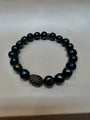 Handmade turquoise stretch bracelet with diamond accent set in oxidized silver.