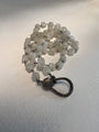 Handmade moonstone wire wrapped necklace with diamond lobster clasps set in oxidized silver.